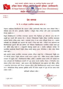 अखिल (क्रान्तिकारी) अध्यक्ष विरेन्द्र शाहले एक प्रेश विज्ञप्ती जारी गर्दै राजनीतिक भागबन्डाका आधारमा गरिएका सम्पूर्ण डिन र निर्देशकहरूको नियुक्ति बदर गरी मेरिटको आधारमा नियुक्ति प्रक्रियामा अगाडी बढाउन माग गरेको छ।