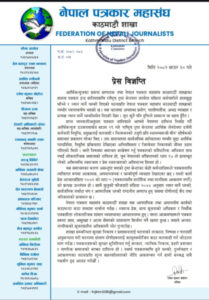 काठमाडौं शाखाका सचिव रमेश कुमार बोहोराले पत्रकारमाथि भएको आपराधिक तथा अमानवीय आक्रमणको घोर भर्त्सना गर्दै सम्बन्धित सुरक्षा निकाय र प्रशासनलाई तत्काल, निष्पक्ष र पारदर्शी अनुसन्धान गरी दोषीलाई कानूनबमोजिम कडाभन्दा कडा कारबाही गर्न जोडदार माग गरेका छन् ।